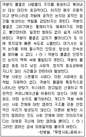 16. <보기>의 ㉠에 들어갈 접속 부사로 가장 옳은 것은?