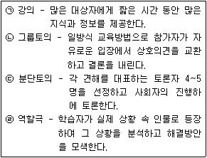 11. 다음은 보건교육방법에 대한 설명이다. 옳은 것을 모두 고르면?