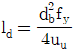 19. <보기>는 콘크리트 속에 매설된 철근이 한쪽 끝에서 인장력(T)을 받고 있음을 나타낸다. 철근의 정착길이(Id)에 대한 식으로 가장 옳은 것은? (단, As는 인장철근의 단면적, fy는 철근의 설계기준항복강도, uu는 철근과 콘크리트의 극한공칭부착강도, db는 철근의 공칭지름을 나타낸다.)