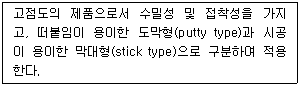 27. 상온상태에서 영구히 점성과 유연성을 유지하며 가벼운 압력(자중)에 의해서도 피착면에 쉽게 밀착되는 특성을 가진 겔타입의 도막형 방수제는?