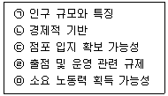 31. 아래 글상자의 항목 중 상권분석에서 고려해야 할 지역 및 상권 정보를 모두 포함한 내용으로 가장 옳은 것은?