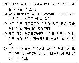 17. 아래 글상자에서 글로벌 제품조직(global product structure)에 대한 설명으로 옳은 것을 모두 고르면?