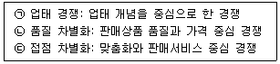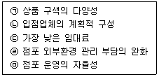 52. 아래 글상자는 소매업의 주요 경쟁 요인을 나열하고 있다. 다음 중 시간의 흐름에 따른 소매업체 간 경쟁 요인의 진화 과정에 대한 기술로서 가장 옳은 것은?
