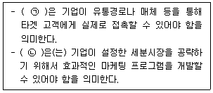 46. 효과적인 시장세분화의 요건으로서 아래 글상자의 괄호 안에 들어갈 내용으로 가장 옳은 것은?