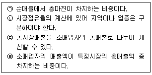 6. 아래 글상자에서 시장점유율에 관한 설명으로 옳은 것을 모두 고르면?