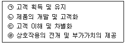 65. CRM 실행 프로세스를 순차적으로 나열한 항목으로 가장 옳은 것은?