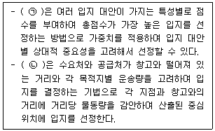 20. 아래 글상자에서 설명하는 창고입지선정법을 순서대로 옳게 나열한 것은?