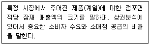 31. 아래 글상자에서 설명하는 소매상권의 매력도를 평가하는 지수(Index)로 옳은 것은?