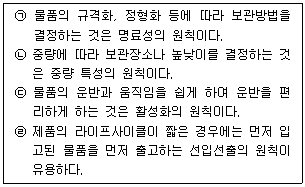 7. 아래 글상자에서 보관과 관련된 각종 원칙을 옳게 설명한 것을 모두 고르면?