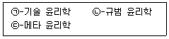 13. 아래 글상자의 항목들 가운데 인간의 도덕적 행위의 근거가 되는 도덕 원리나 인간의 성품을 탐구하고 이를 바탕으로 도덕적 문제의 해결과 실천 방법을 제시하는 윤리학의 대표적 분야를 모두 포함하는 내용으로 가장 옳은 것은?