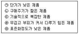 9. 아래 글상자의 제품들 중 도매상의 개입 필요성이 상대적으로 낮은 제품만을 바르게 나열한 것은?