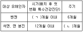 20. 특수건강진단의 시기 및 주기에 관한 산업안전보건법 시행규칙 [별표 23]의 일부이다. ( )에 들어갈 숫자로 옳은 것은? (단, 특수건강진단 주기의 예외 규정은 고려하지 않음)