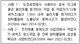 31. 우리나라에서 발생한 급성 중독 사례이다. 해당 화학물질로 옳은 것은?