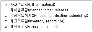 57. 자재소요계획(material requirement planning)의 입력 자료를 모두 고른 것은?