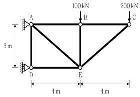 11. 그림과 같은 트러스에서 부재 BE에 작용하는 부재력[kN]의 절댓값은? (단, 부재의 자중은 무시한다)