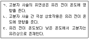 6. 무정형(amorphous) 고분자의 유리 전이 온도(glass transition temperature)에 대한 설명으로 옳은 것만을 모두 고르면?
