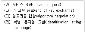 15. 다음 SSH의 전송 계층 프로토콜 작업을 순서대로 나열한 것은?