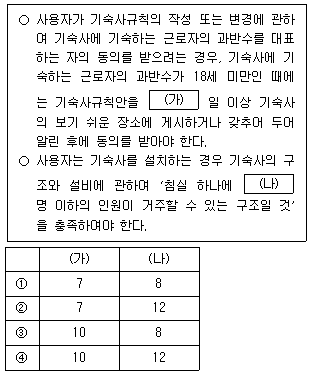 6. 근로기준법령상 기숙사에 대한 설명 중 (가)와 (나)에 들어갈 내용을 바르게 연결한 것은?